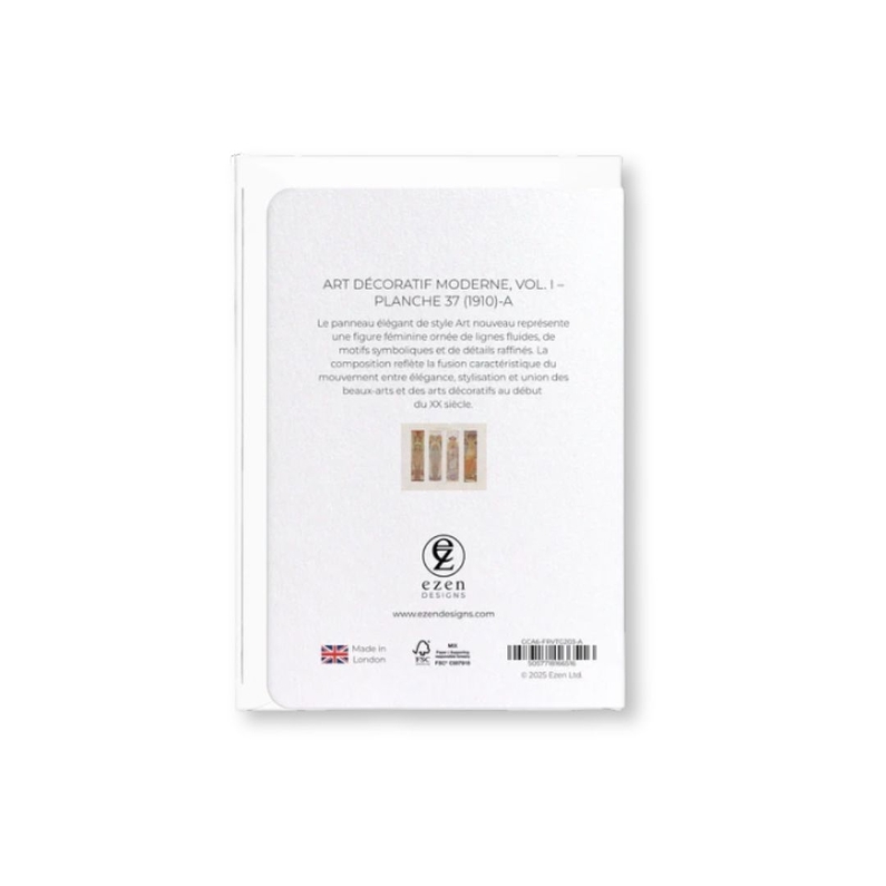 Discover this A6 Postcard Modern Decorative Art Plate 37 A. The elegant Art Nouveau style panel depicts a female figure adorned with flowing lines, symbolic motifs, and refined details.