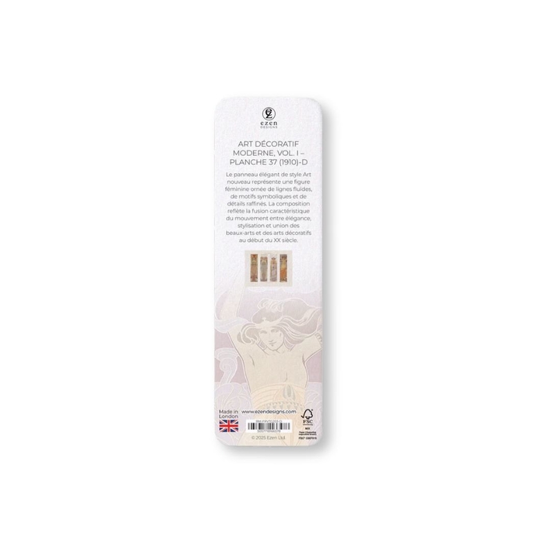 Discover this Modern Decorative Art Bookmark Plate 37 D. The elegant Art Nouveau style panel depicts a female figure adorned with flowing lines, symbolic motifs, and refined details.