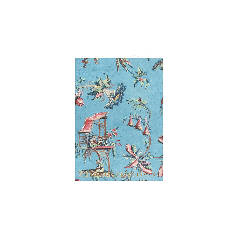 This small notebook with a soft cover decorated with the 'Pagoda' motif, attributed to the Dussere factory, dates from the 18th century in Lyon. It comes from the collection of the Musée des Arts Décoratifs in Paris.