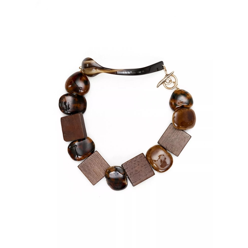 MONTE AMARIANA NECKLACE MONTE AMARIANA NECKLACE €320 Unavailable Characteristics Categories Fashion accessories, Watch and jewelry, Exhibition, Une journée au XVIIIe siècle, chronique d’un hôtel particulier Description The MONTE AMARIANA necklace is made from an antique zebu horn spoon from Madagascar, twisted in Paris by a craftsman. The beads are made from wood and vintage ceramics.