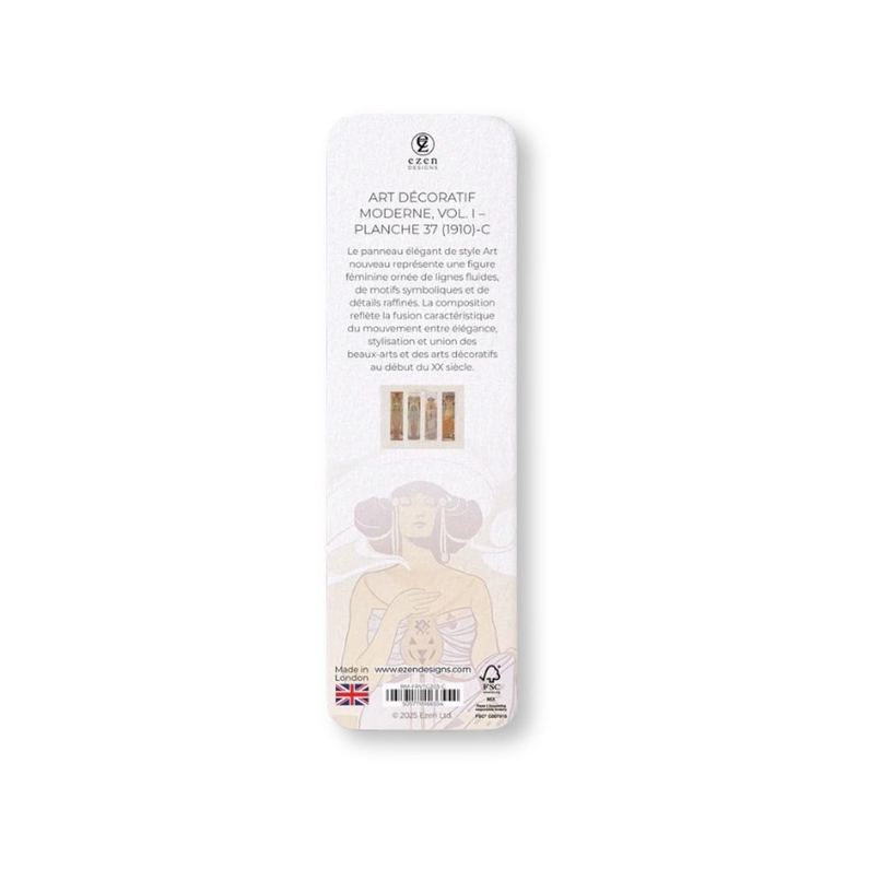 Découvrez ce Marque-page Art Décoratif Moderne Planche 37 C. Le panneau élégant de style Art nouveau représente une figure féminine ornée de lignes fluides, de motifs symboliques et de détails raffinés.